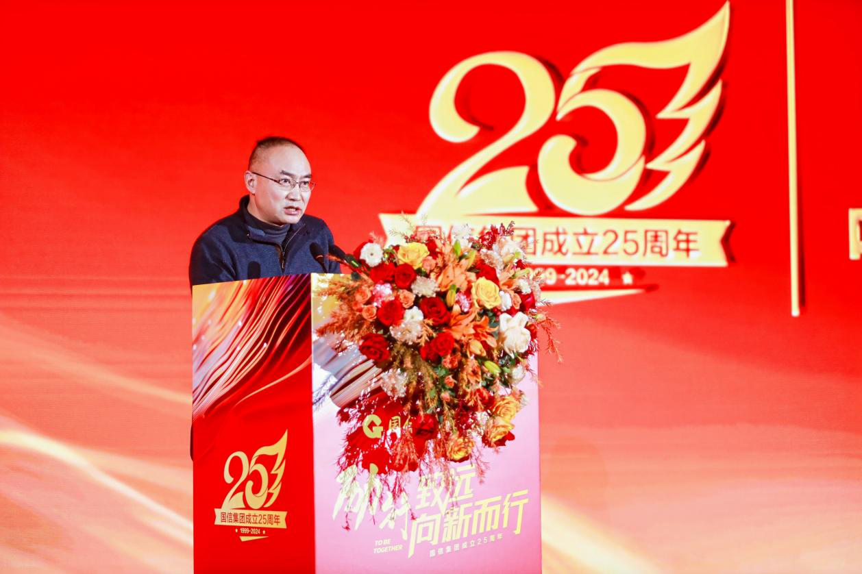 當(dāng)國信集團總裁賈宇昆那深情的致辭縈繞耳畔時,又將嘉賓們的思緒帶回到慶典現(xiàn)場。賈總代表集團對各位領(lǐng)導(dǎo)和各界朋友的光臨表示最熱烈的歡迎,對服務(wù)國信集團的各位老專家、老同事的光臨表示最誠摯的問候,對默默支持集團發(fā)展的員工家屬表示最崇高的敬意,對與集團一起甘苦與共的全體同仁表示最衷心的感謝。賈總講到,“天下大事,必作于細”,每一個成功項目的背后,都是對細節(jié)的精心打磨和對完美的不懈追求。二十五載的發(fā)展歷程,國信培養(yǎng)了一批批具有匠心精神的行業(yè)精英,他們用行動詮釋了什么是專業(yè)創(chuàng)造價值,在國內(nèi)外市場樹立了國信品牌的卓越形象。國信的初心在于服務(wù)國家大局,助力社會發(fā)展。站在新的歷史起點上,面對全球變化的新格局,國信集團將以25周年為新契機,繼續(xù)深化企業(yè)改革,加快創(chuàng)新驅(qū)動,推動高質(zhì)量發(fā)展。國信將積極響應(yīng)數(shù)字中國戰(zhàn)略,利用云計算、大數(shù)據(jù)、人工智能等先進技術(shù)賦能傳統(tǒng)產(chǎn)業(yè)轉(zhuǎn)型升級,開啟智慧建設(shè)的新篇章。每一位國信人要不忘初心、牢記使命,繼續(xù)在中華民族偉大復(fù)興的道路上砥礪前行,共同開創(chuàng)國信集團更加輝煌燦爛的明天。值此元旦佳節(jié)來臨之際,賈總向所有嘉賓和國信同仁致以最誠摯的祝福。